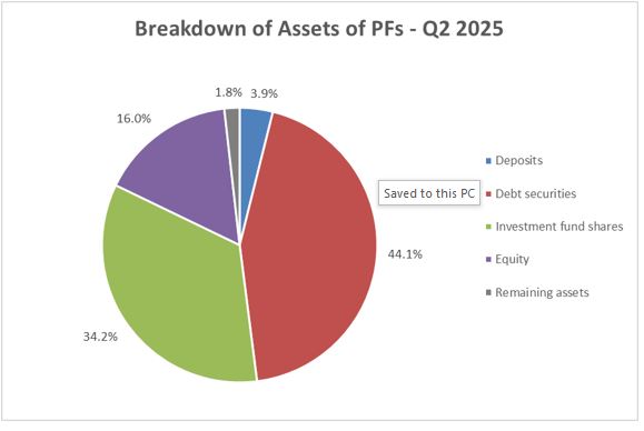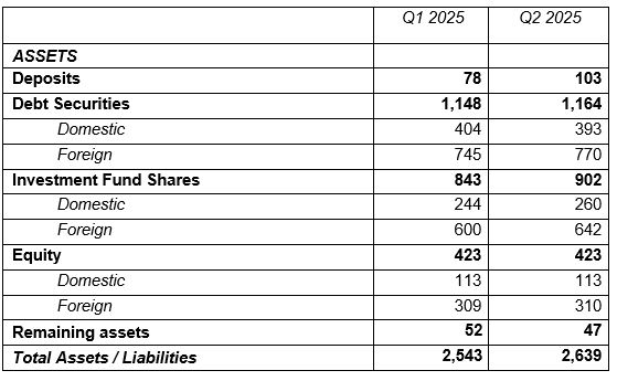 - Total assets of pension funds increased by 3.8% to €2,639 million at the end of the second quarter of 2025 from €2,543 million in the previous quarter.