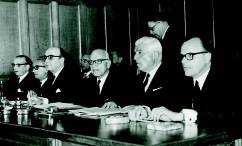 | Φωτογραφία των “Τεσσάρων Σοφών” από άρθρο στην εφημερίδα The Christian Science Monitor, σχετικά με την ίδρυση και τον σκοπό του ΟΟΣΑ, 3.10. 1961 (Web, Print) | Άρθρο στην εφημερίδα Το Βήμα, όπου δημοσιεύεται ο δεύτερος λόγος στα αγγλικά με λέξεις ελληνικής προέλευσης που εκφώνησε ο Ξενοφών Ζολώτας στο ΔΝΤ, 4.10. 1959 (Web, Print) |