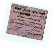| Φοιτητική ταυτότητα του Ξενοφώντος Ζολώτα από το Πανεπιστήμιο Αθηνών, Τμήμα Νομικής, 1920-1921 (Web, Print) | Ο Ξενοφών Ζολώτας κατά την ομιλία του στην Ετήσια Γενική Συνέλευση των Μετόχων της Τράπεζας της Ελλάδος, 9.4.1959 (Web, Print) |