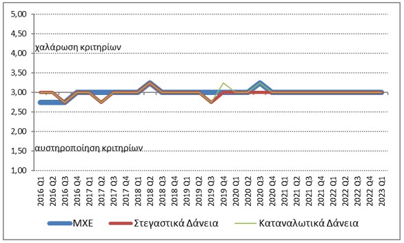 Τα κριτήρια χορήγησης στεγαστικών και καταναλωτικών δανείων αναμένεται να παραμείνουν σχεδόν αμετάβλητα κατά τη διάρκεια του β΄ τριμήνου του 2023.
